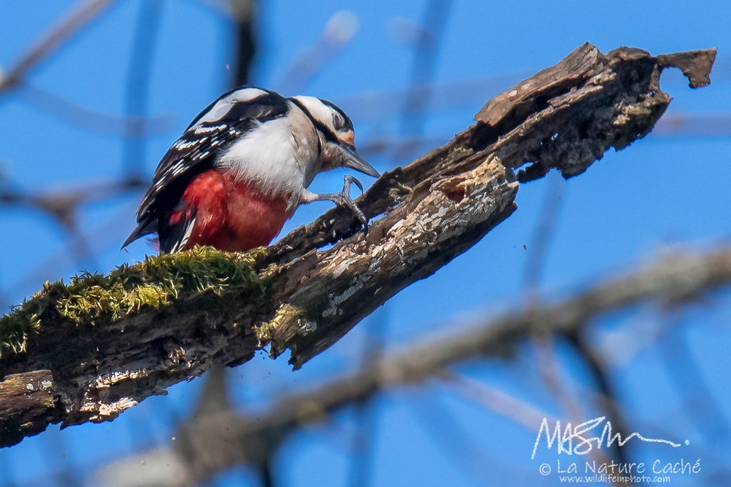 Shot at 8 fps: so, Yes, woodpeckers really do open & close their eyes at the start and end of every strike….blinking fast!